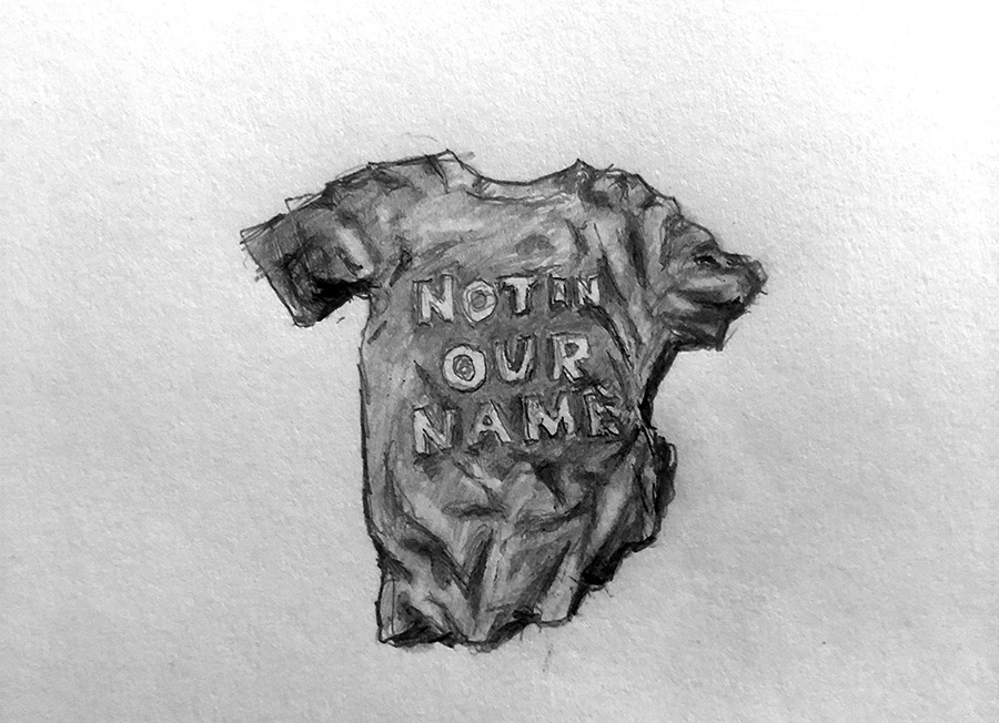 Tabling for Jewish Voice for Peace at the Grand Army Plaza Farmers Market. For the last several weekends some JVP colleagues and I have set up a small table and distributed flyers to passersby, an attempt to both recruit new members and raise the visibility of anti-Zionist Jews in a Brooklyn neighborhood with a large Jewish population. Reactions run the gamut from supportive to outright hostile (‘Oh, I’ve heard of you guys, I love what you’re doing,’ or: ‘Fuck you.’) Near the end of our shift a man approaches the table where my colleague L and I are sitting. He points to our banner that reads, ‘Jews Say Stop the Genocide’: ’You know,’ he says, in a voice dripping with condescension, ‘you guys would attract a lot more people if you put underneath that, ‘… and Save the Hostages.’ ‘Which hostages,’ L fires back, alluding to the more than 10,000 Palestinian political prisoners currently being held in Israeli jails under conditions of torture and humiliation. She’s an immigration lawyer who happens to have family in Israel, and she doesn’t mince words. A long and exhausting debate ensues, during which the man, who describes himself as a filmmaker ‘critical of Israel’, nonetheless trots out the familiar tropes about how the Palestinians have sabotaged all attempts at peace and ultimately want to kill all the Jews. After ten or fifteen minutes of us talk-shouting arguments past each other the man leaves in a huff. Later, L and I are heading to the train together and stop in a deli for a drink. The clerk, a young man who could very well be of Palestinian descent, nods at my ‘Not in Our Name’ shirt and says, ‘Thanks for the T-shirt, brother.’ As we’re leaving L turns to me: ‘It’s interactions like that that make it all feel worth it.’