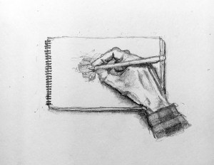 The drawings have been added sporadically, and generally at later dates. My intention with the sketches has been to create images that refer to the journal entry, sometimes indirectly, in a way that compliments rather than illustrates the narrative. I’ve tried to limit myself in the time I spend working on the sketches to roughly the time it took me to write the entry. The drawings are no. 2 pencil on 6” x 8” paper.